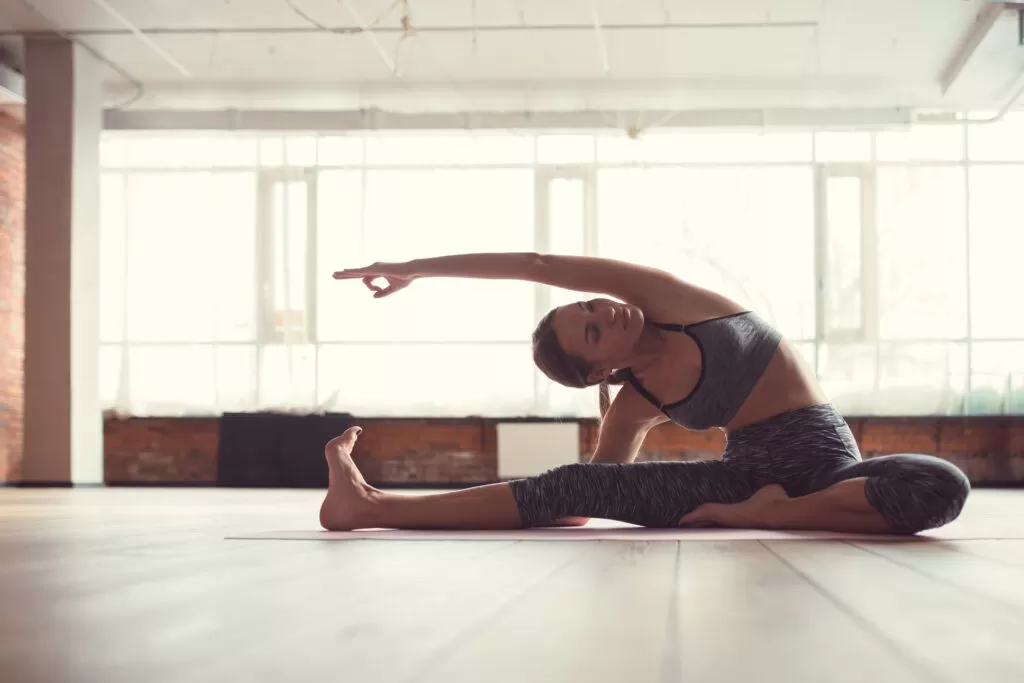 Como fazer: Sente com as pernas afastadas, dobre um joelho e leve o calcanhar entre as virilhas. Eleve os dois braços ao lado das orelhas, e desça o tronco lateralmente em direção à perna esticada. Posicione um mão no pé e direcione o olhar para o alto, por baixo do braço.